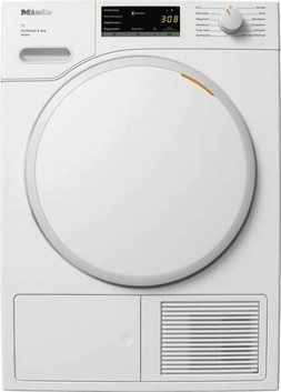 Miele Wärmepumpentrockner mit Energieeffizienz A+++ Miele TWA 520 WP Wärmepumpentrockner, 5° geneigte Blende, 8 kg Füllmenge, Schontrommel, 12 Programme, Startzeitvorwahl, AddLoad (Nachlegefunktion), LCD-Display, Restzeitanzeige, EcoDry-Technologie, Eco, FraganceDos (duftende Wäsche mit optionalem Duftflakon), Imprägnieren, Knitterschutz, Schonen Plus, Finish Wolle, LED-Trommelinnenbeleuchtung, wartungsfreier Wärmetauscher (keine manuelle Reinigung mehr notwendig), Kondenswasserableitung, PIN-Code Verriegelung, Kondenswasser-Ablaufschlauch, Energieeffizienzklasse A+++, Breite: 59,6 cm, Höhe: 85 cm, Tiefe: 65,5 cm | ![]() |